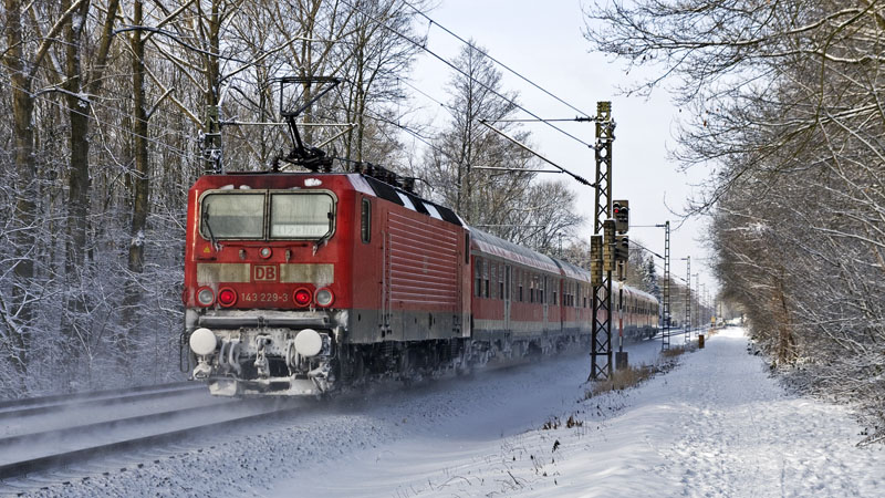 | Pulverschnee aufwirbelnd bremste die 143 229-3 ihre RegionalBahn ab. Prisdorf | Peiner Hag, 30. Januar 2010 |