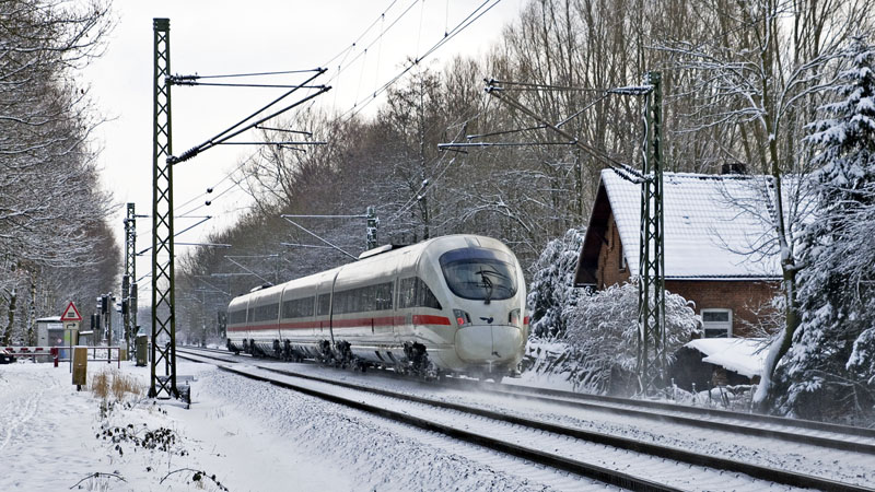 | Ein sehr dreckiger ICE-TD als ICE von Arhus nach Hamburg – gebildet vom Triebzug 605 003. Prisdorf | Peiner Hag, 30. Januar 2010 |