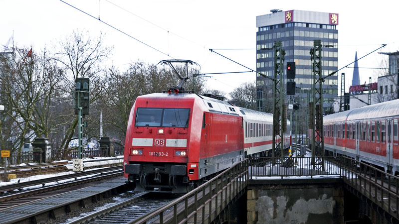 | Noch eine "Vorserienlok" der Baureihe 101 – die 101 001-6 bei der Einfahrt mit ihrem IC. Hamburg Dammtor, 19. Februar 2010 |
