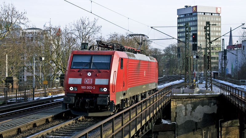 | Auch die 189 005-2 mußte via Verbindungsbahn gen Norden fahren. Hamburg Dammtor, 19. Februar 2010 |