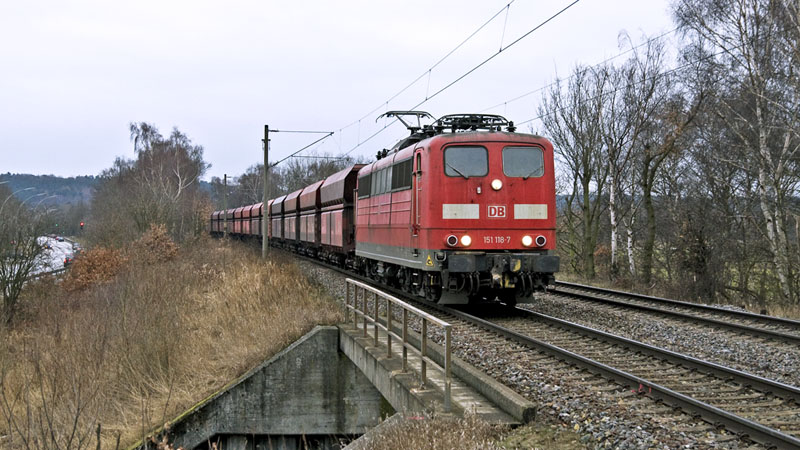 | Einen Erzleerpark durfte die 151 118-7 allein nach Hansaport bringen. Hamburg-Moorburg, 27. Februar 2010 |