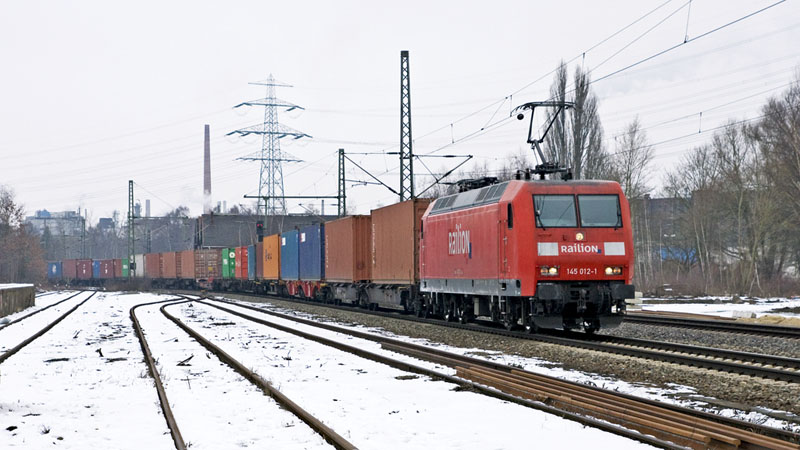 | Momentan scheinte es in Waltershof zu brummen, die 145 012-1 mit ihrem nächsten Containerzug. Hamburg-Unterelbe, 11. März 2010 |