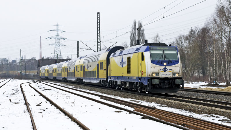 | Der Cuxhavener metronom zum Hamburger Hbf mit der 246 002-0. Hamburg-Unterelbe, 11. März 2010 |