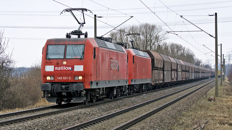 | Nun kamen 145 021-2 und 145 051-9 mit ihrem Kohleganzzug am Haken. Hamburg-Moorburg, 12. März 2010 |