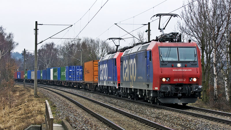 | Meine Güte, binnen einer Stunde die 4. und 5. SBB Loks – 482 031-2 und 482 039-5 in Doppeltraktion. Hamburg-Moorburg, 12. März 2010 |