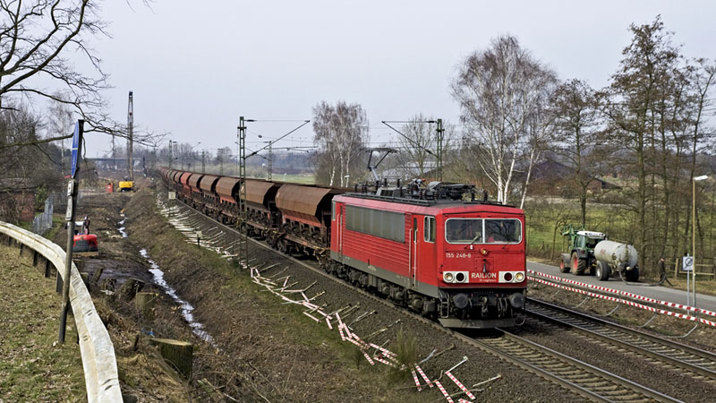 | Einen weiteren Schüttgutzug von Hohe Schaar hatte die 155 248-8 am Haken. Stelle, 24. März 2010 |
