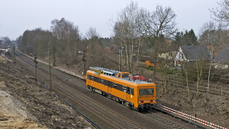 | Ein ex-DR-Oberleitungsrevisionstriebwagen (ORT) – 708 330-6 – rollte in Richtung Maschen. Stelle, 24. März 2010 |