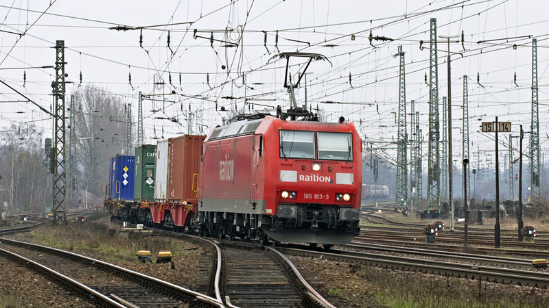 | Dann folgte auch noch die Schwesterlok 185 163-3 mit weiteren Containern. Uelzen, 27. März 2010 |