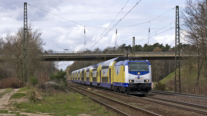 | Der nächste schnelle metronom nach Uelzen mit der ME 146-10. Radbruch, 9. April 2010 |