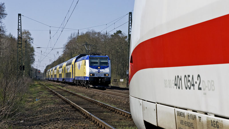 | Auch dieser metronom mit ME 146-03 durfte den ICE "überholen". Radbruch, 18. April 2010 |