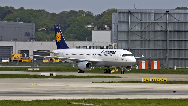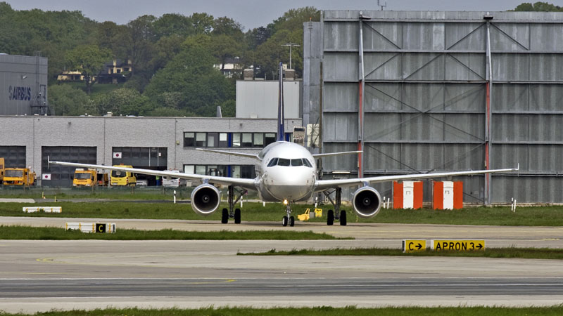 | Nun rollte die Lufthansa A320 auf das "Runway". Hamburg-Finkenwerder, 19. Mai 2010 |