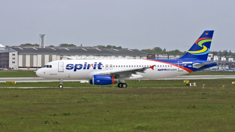 | Vom Auslieferungszentrum kam diese A320 der amerikanischen spiritair herangerollt. Hamburg-Finkenwerder, 19. Mai 2010 |