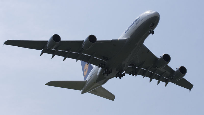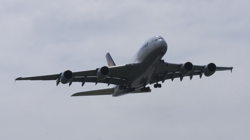 | Majätisch segelte das größte Passagierflugzeug der Welt über uns vorüber… Hamburg-Finkenwerder, 19. Mai 2010 |