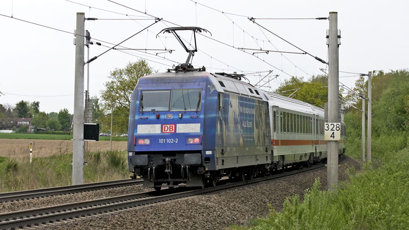| Einen InterCity ins Rheinland hatte die 101 035-4 zu ziehen. Klecken, 20. Mai 2010 |