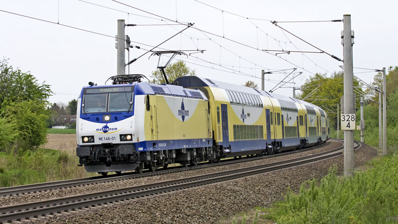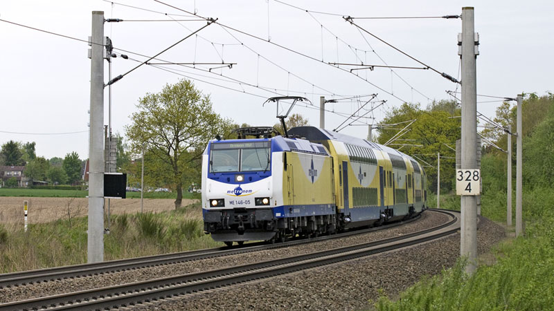 | Und nun der nächste metronom nach Bremen mit der ME 146-01. Klecken, 20. Mai 2010 |