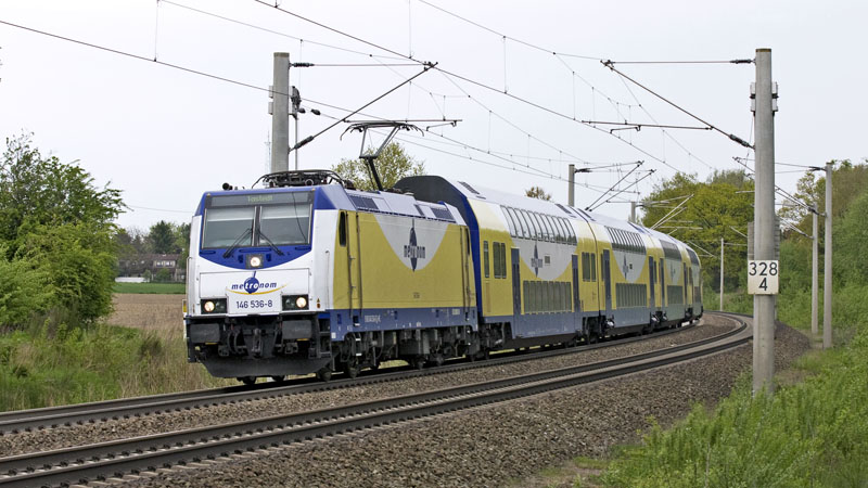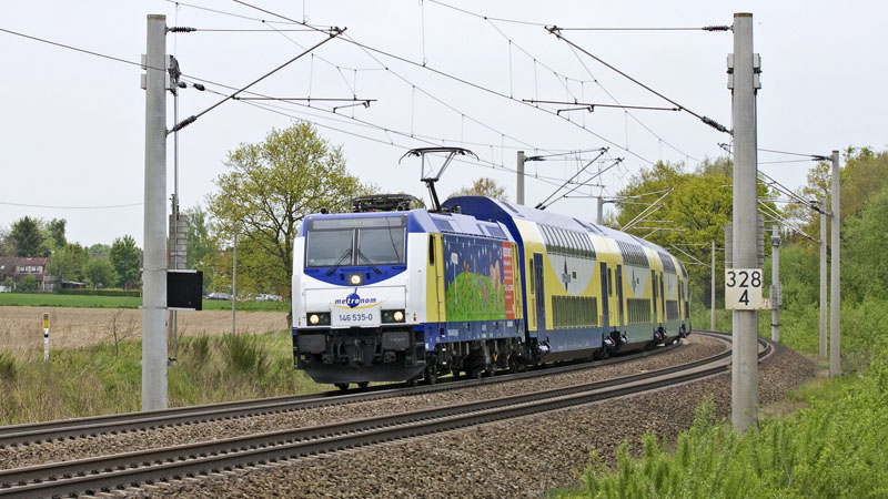 | Der regonale metronom nach Tostedt mit der 146 536-8. Klecken, 20. Mai 2010 |