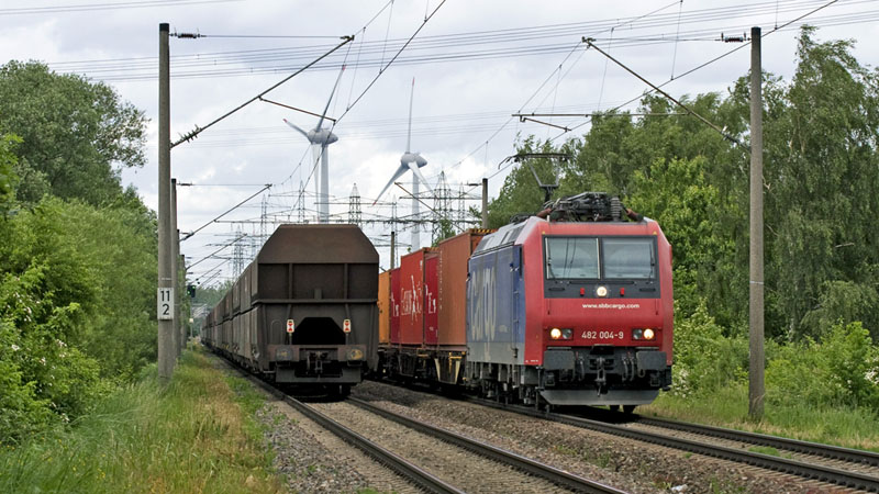 | Wenig später folgte 482 004-9 der SBB Cargo mit einem Containerzug. Hamburg-Moorburg, 12. Juni 2010 |