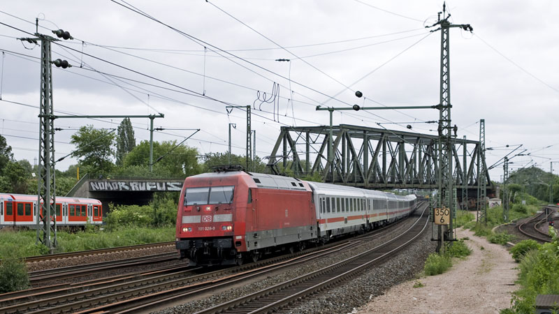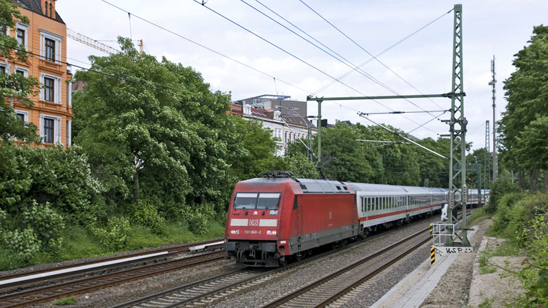 | Der InterCity 1872 mit der 101 060-2. Hamburg-Sternschanze, 18. Juni 2010 |