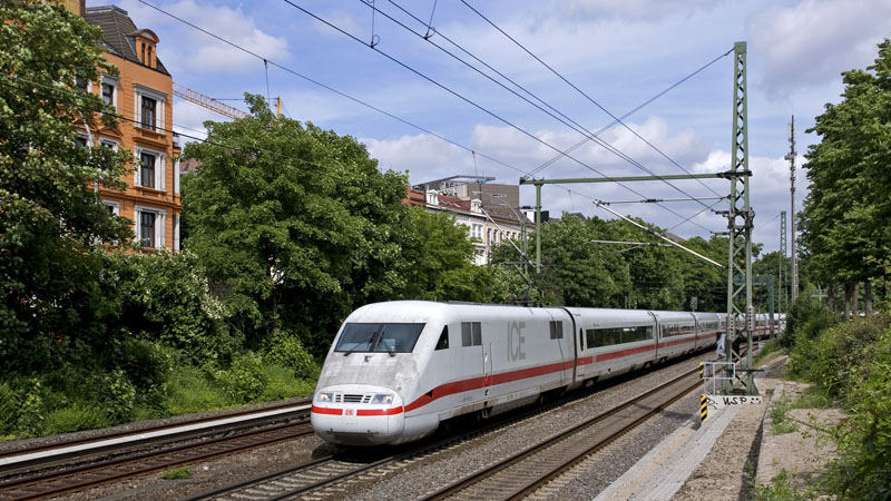 | Beim ICE scheint immer die Sonne… ICE-Triebzug 115 kam soeben von Hamburg-Dammtor. Hamburg-Sternschanze, 18. Juni 2010 |