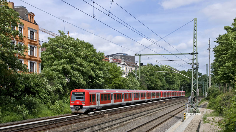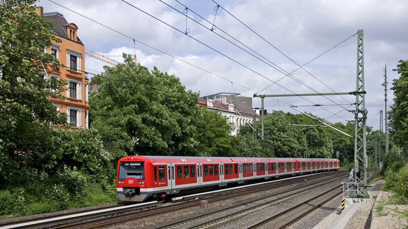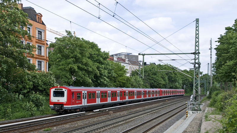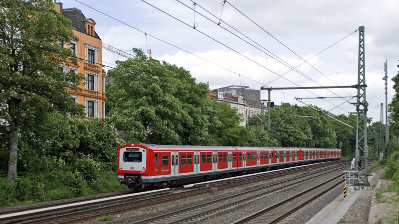 | Im Blockabstand dann die S31 nach Altona mit 474 013 und 474 048. Hamburg-Sternschanze, 18. Juni 2010 |