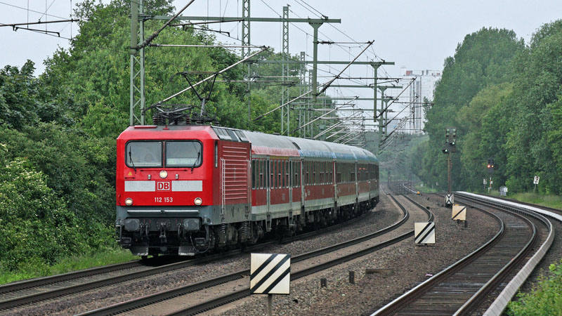 | Der Schleswig-Holstein-Express von Padborg nach Hamburg mit der 112 153. Halstenbek, 20. Juni 2010 |
