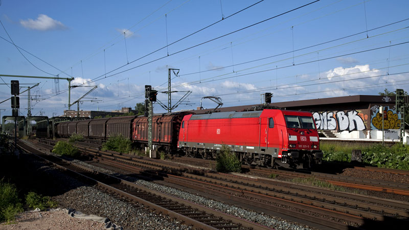 | Von Schweden kam dieser lange Güterzug mit der 185 325-5. Hamburg-Veddel, 25. Juni 2010 |