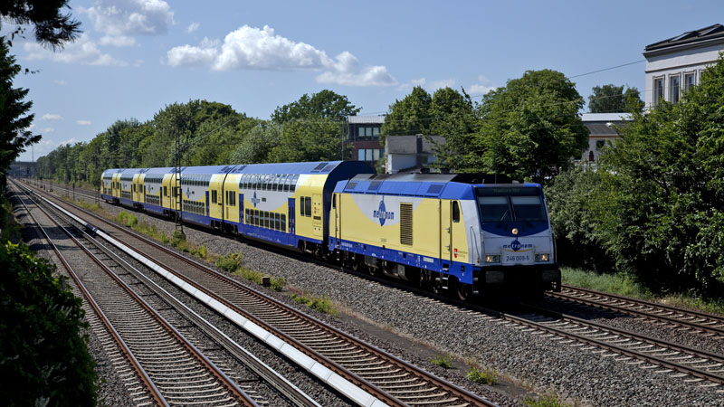 | Der metronom von Cuxhaven nach Hamburg mit der 246 009-5. Hamburg-Hausbruch, 25. Juni 2010 |