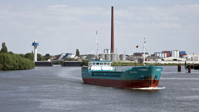 | Wegen diesem Schiff ELVI KULL wurde die Rethe-Hubbrücke hochgefahren. Hamburg-Hohe Schaar, 26. Juni 2010 |
