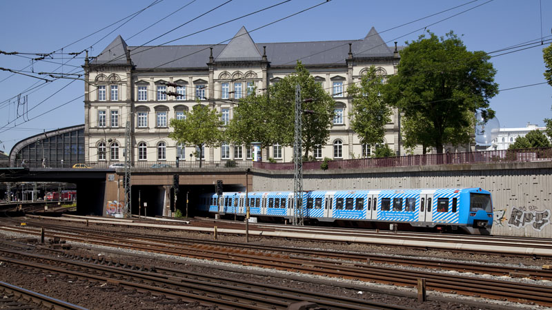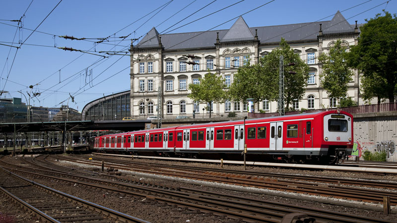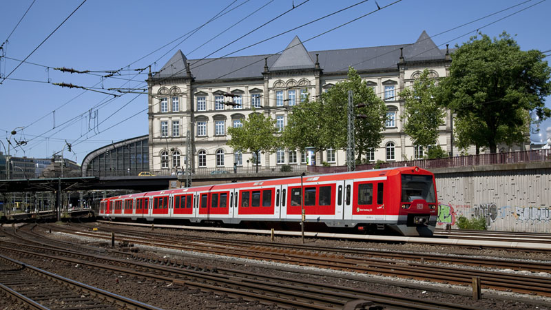 | Dieser 472-Vollzug fuhr als S21 nach Bergedorf am Museum für Kunst und Gewerbe vorbei. Hamburg Hauptbahnhof, 27. Juni 2010 |