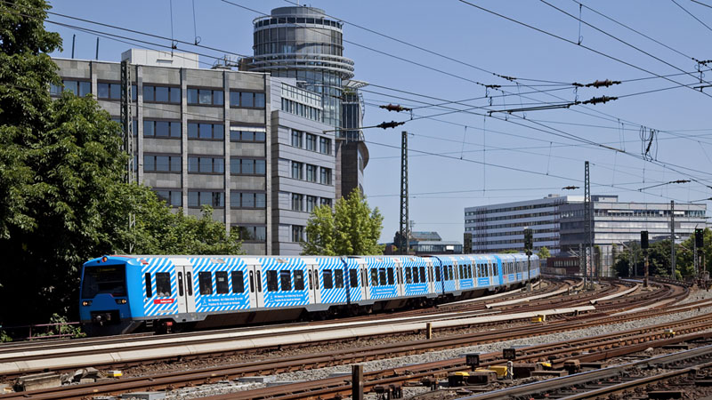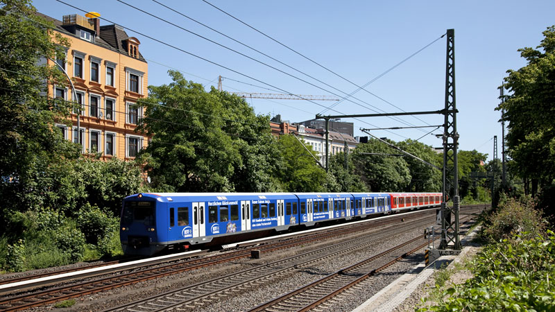 | Auf Sonderfahrt war der historische S-Bahnzug ET 171 082 unterwegs. Hamburg-Sternschanze, 27. Juni 2010 |
