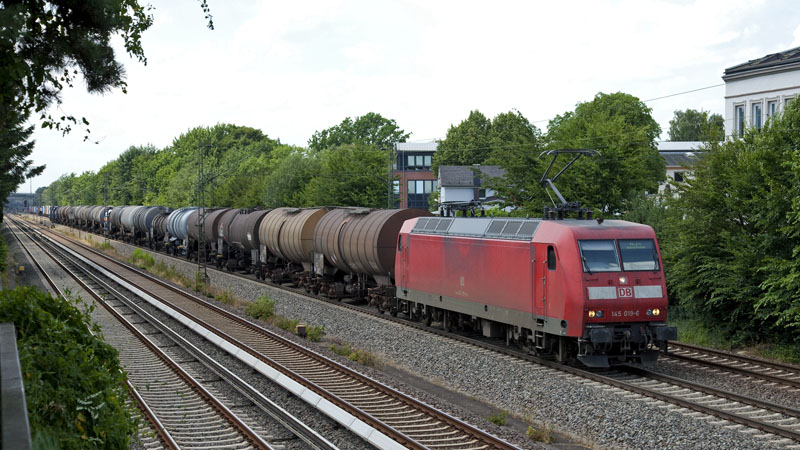 | Von Stade kam dieser Kesselwagenzug mit der 145 019-6. Hamburg-Hausbruch, 15. Juli 2010 |