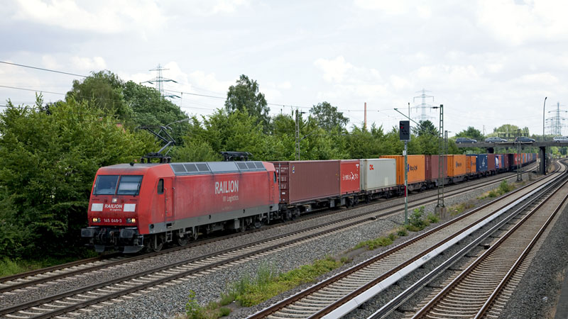 | Direkt von Maschen kam dieser Containerzug mit der 145 074-1. Marxen, 15. Juli 2010 |