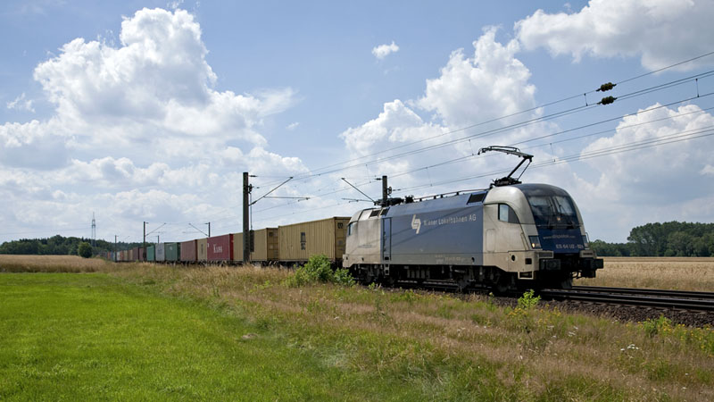 | Auch die schwarze ES 64 F4-280 mußte mit ihrem Containerzug durch die sommerliche Hitze. Marxen, 15. Juli 2010 |