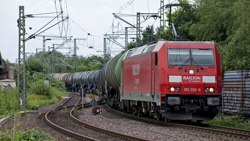 | Einfahrt für den schweren Kesselwagenzug mit der 185 292-0… Hamburg-Veddel, 17. Juli 2010 |