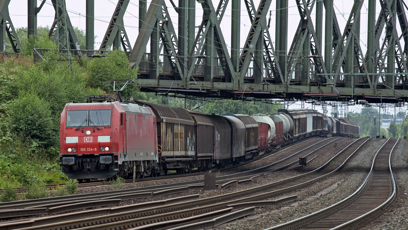 | Schwer am "knicken" war dieser Güterzug nach Schweden mit der 185 324-8. Hamburg-Veddel, 17. Juli 2010 |