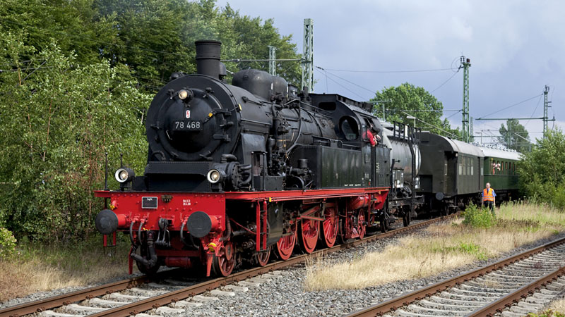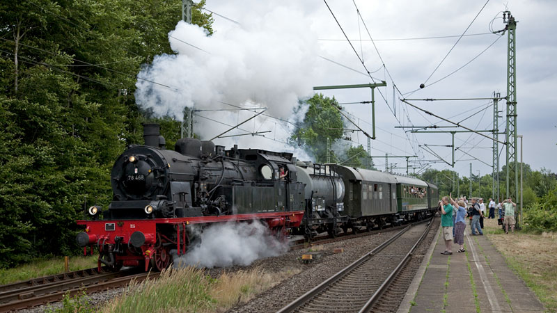 | Die 78 468 mußte ihren Zug rangieren, um einen mitgeführten Wagen abzusetzen. Tornesch, 17. Juli 2010 |