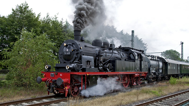 | Nach dem Wasser fassen und Kohle bunkern fuhr die 78 468 der Eisenbahntradition Lengerich an ihren Sonderzug. Tornesch, 17. Juli 2010 |