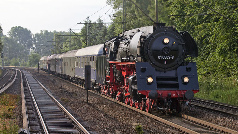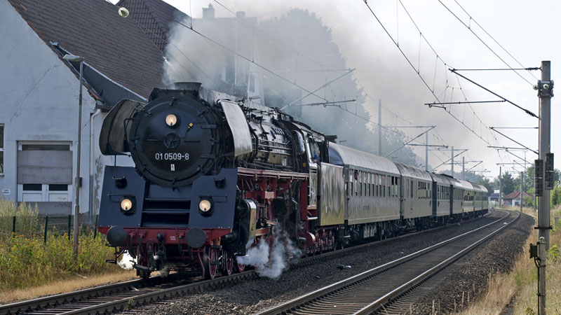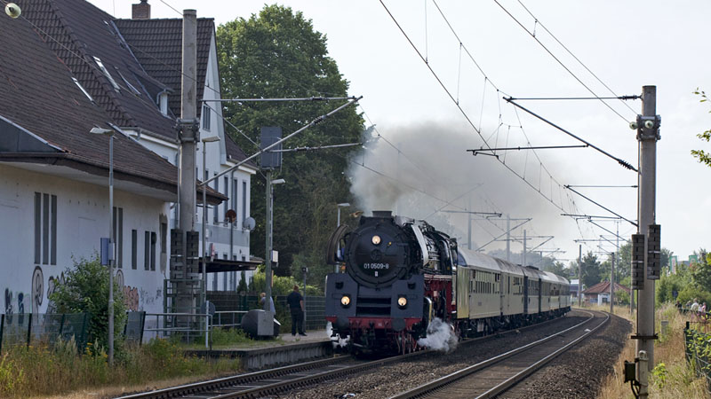 | Nun kam DIE 01.5 der PRESS – die 01 0509-8 auf Schleswig-Holstein-Rundfahrt! Pinneberg-Thesdorf, 17. Juli 2010 |