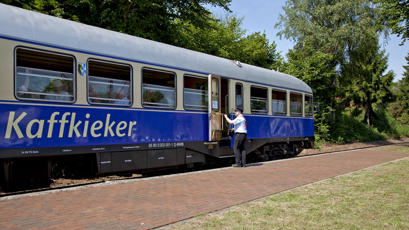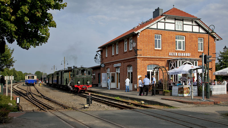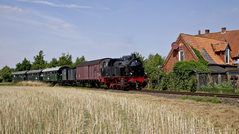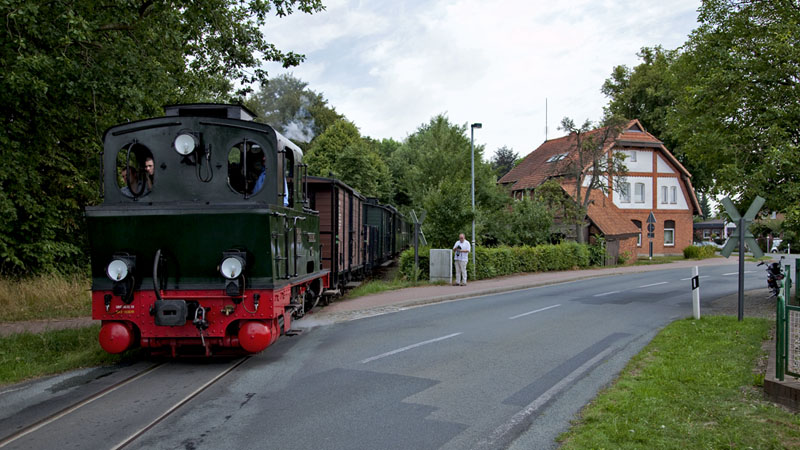 | Von Asendorf kam der Inselbahnzug als "P 512" mit der Lok V4 "Emden". Heiligenberg, 7. August 2010 |