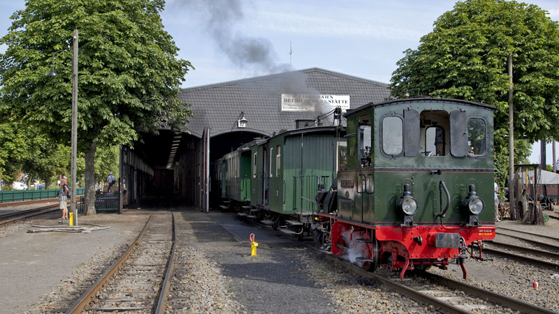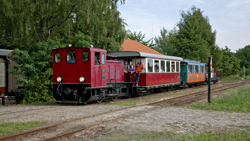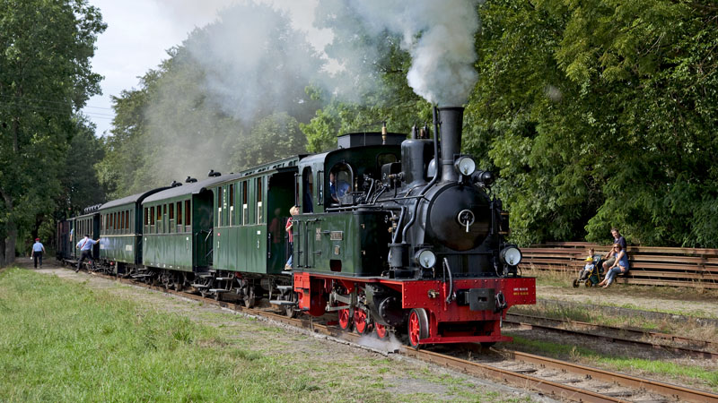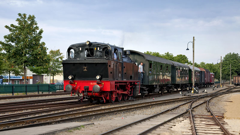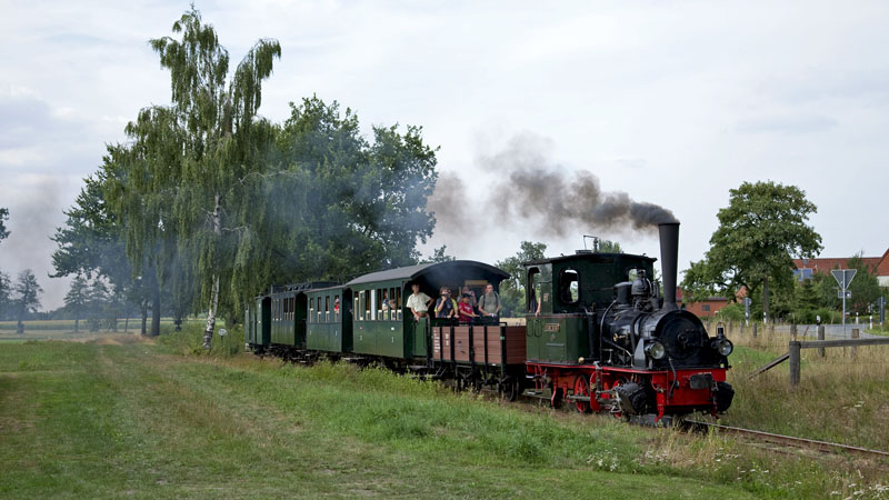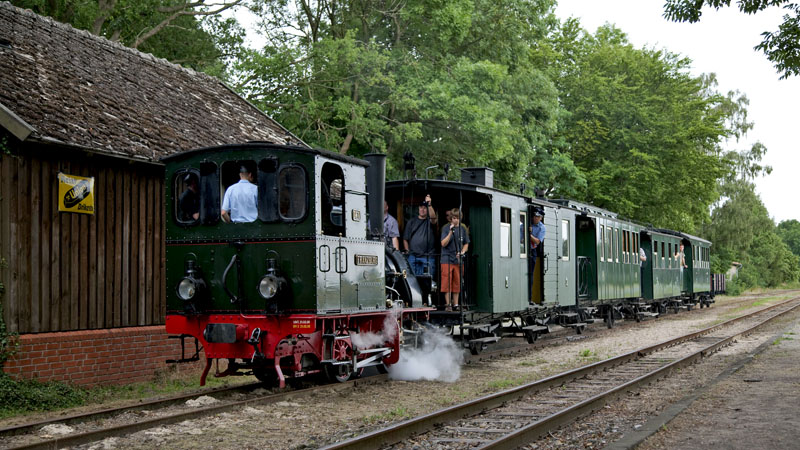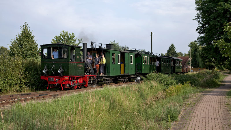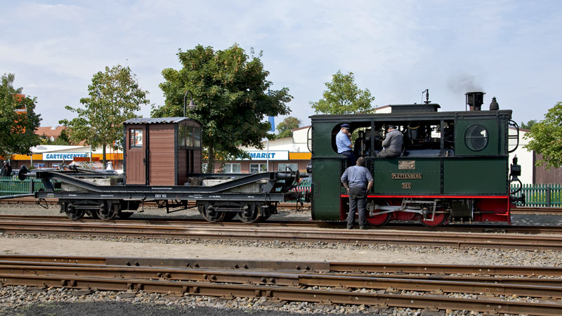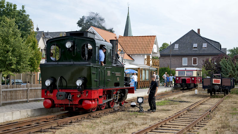 | Die kleinste Dampflok, die "Franzburg" stand vor ihrem Zug der Franzburger Kreisbahnen. Bruchhausen-Vilsen, 7. August 2010 |