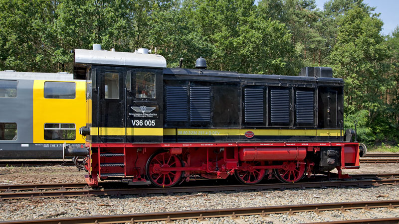 | Die V36 005 des DEV fuhr damals für Verkehrsbetriebe Grafschaft Hoya. Eystrup, 7. August 2010 |