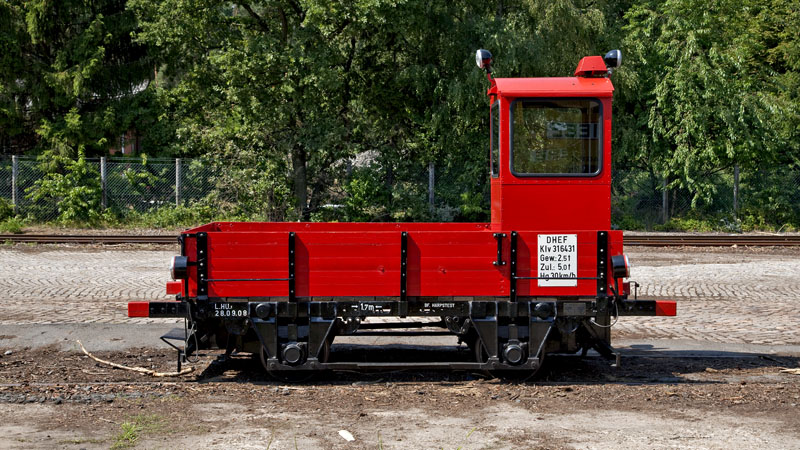 | Dieses Rottenfahrzeug wurde 1949 von der Firma Beilhack an die DB geliefert und kam später zur DHE. Eystrup, 7. August 2010 |