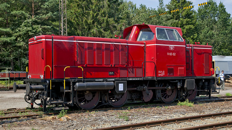 | Herrlich, noch ne MaK-Lok! Die V 65 02 der Museumseisenbahn Bremerhaven - Bederkesa (MaK-Type 650 C, 1962 an die Ilmebahn als V 65 02). Eystrup, 7. August 2010 | ||