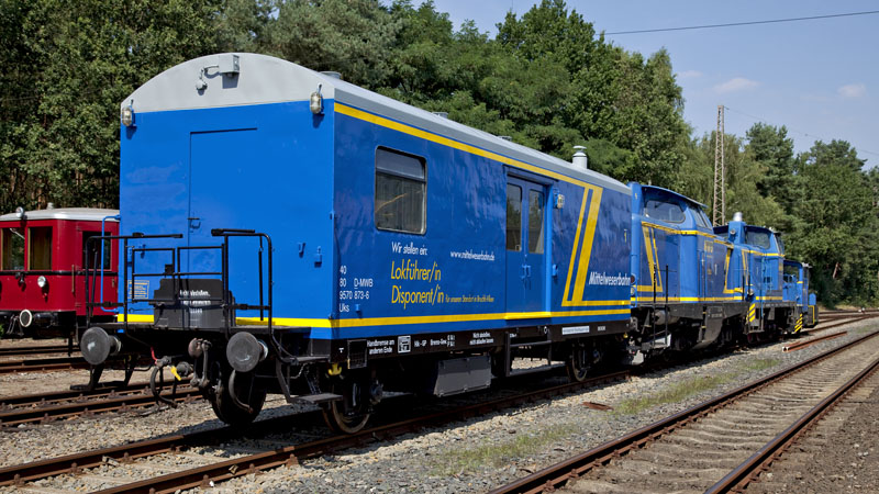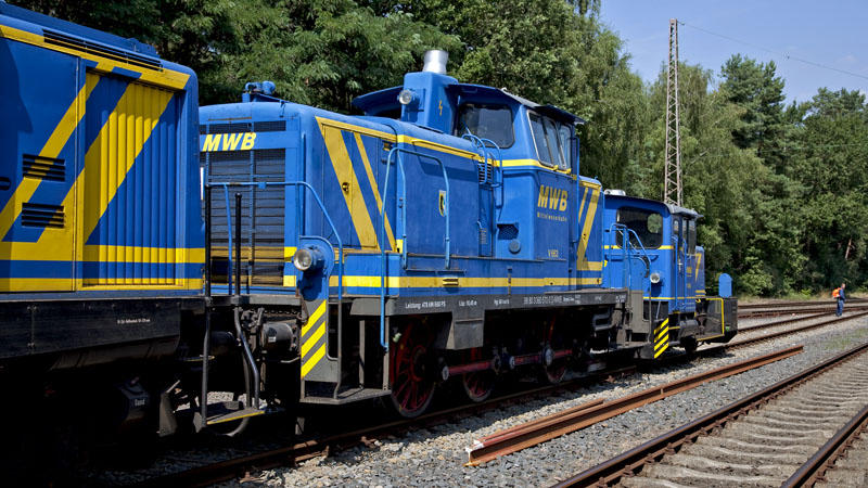| Da die älteste Museumseisenbahn Deutschlands die Keimzelle der Mittelweserbahn ist, standen die MWB-Fahrzeuge auch dort. Eystrup, 7. August 2010 |