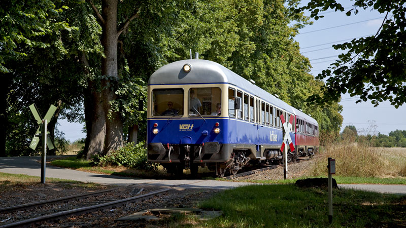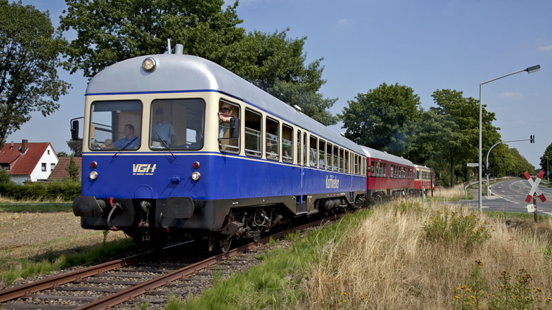 | Der Esslinger Triebwagen als Tw 2 der DEV – fuhr einstmals auf der Strecke Niebüll - Dagebüll. Eystrup, 7. August 2010 |