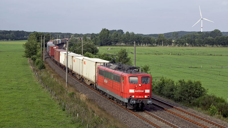 | Ein Containerzug aus dem Hamburger Hafen mit der 151 065-0. Ramelsloh, 22. August 2010 |