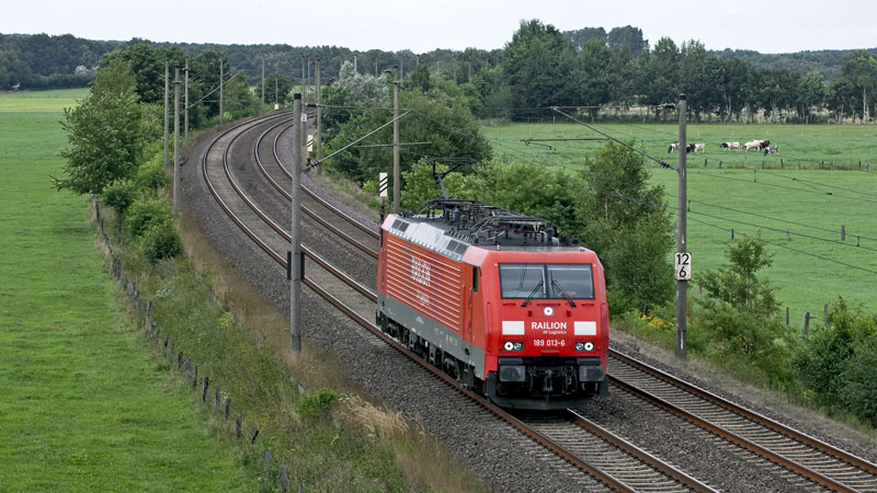 | Lz fuhr die Viersystemlok 189 013-6 von Maschen in Richtung Westen. Ramelsloh, 22. August 2010 |