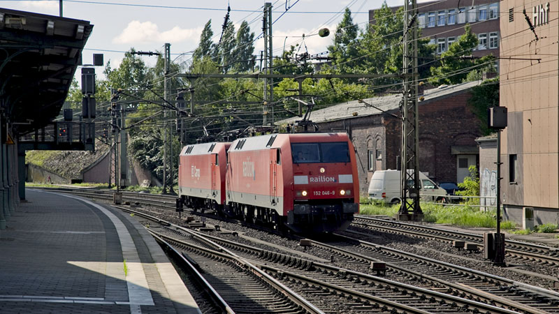 | Als Doppel-Lz rauschten 152 046-9 und 152 036-0 nach Hohe Schaar. Hamburg-Harburg, 5. September 2010 |