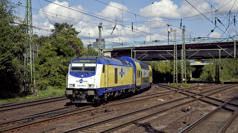 | Von Cuxhaven kam dieser metronom nach Hamburg Hbf mit der 246 003-8. Hamburg-Harburg, 5. September 2010 |