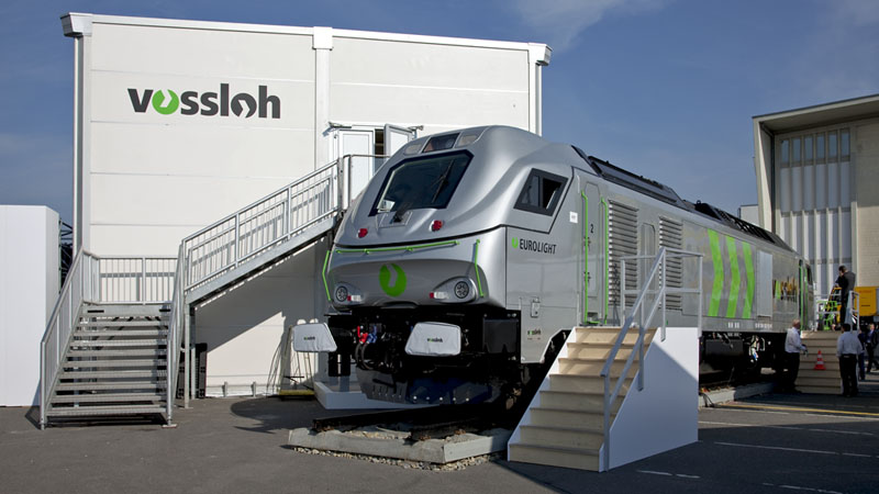 | Die leichtere Form vom EURO 4000 nun als EUROLIGHT vor dem VOSSLOH-Stand. Berlin InnoTrans 2010, 24. September 2010 |